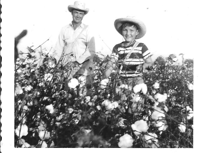 We would arrive at the field before sunrise, even though you weren’t allowed to start picking until a half hour or so after sunrise, the time needed for the cotton to dry from overnight dew. When we got the word, we sprang into action. Wet cotton added weight, so we were anxious to get pickin’ as soon as possible. Fill your sack with as much cotton as you could carry, tote it over your shoulder to the trailer, hang it on the paymaster’s scale, and get paid cash money right then and there, a nickel for every pound. Then, back over your shoulder, up a ten-foot ladder, walk out on a narrow plank spanning the top of the trailer, and empty your sack. When the trailer was nearly full, you could help pack down the cotton by jumping off the narrow plank into the trailer, sort of a “fringe benefit” for us kids.